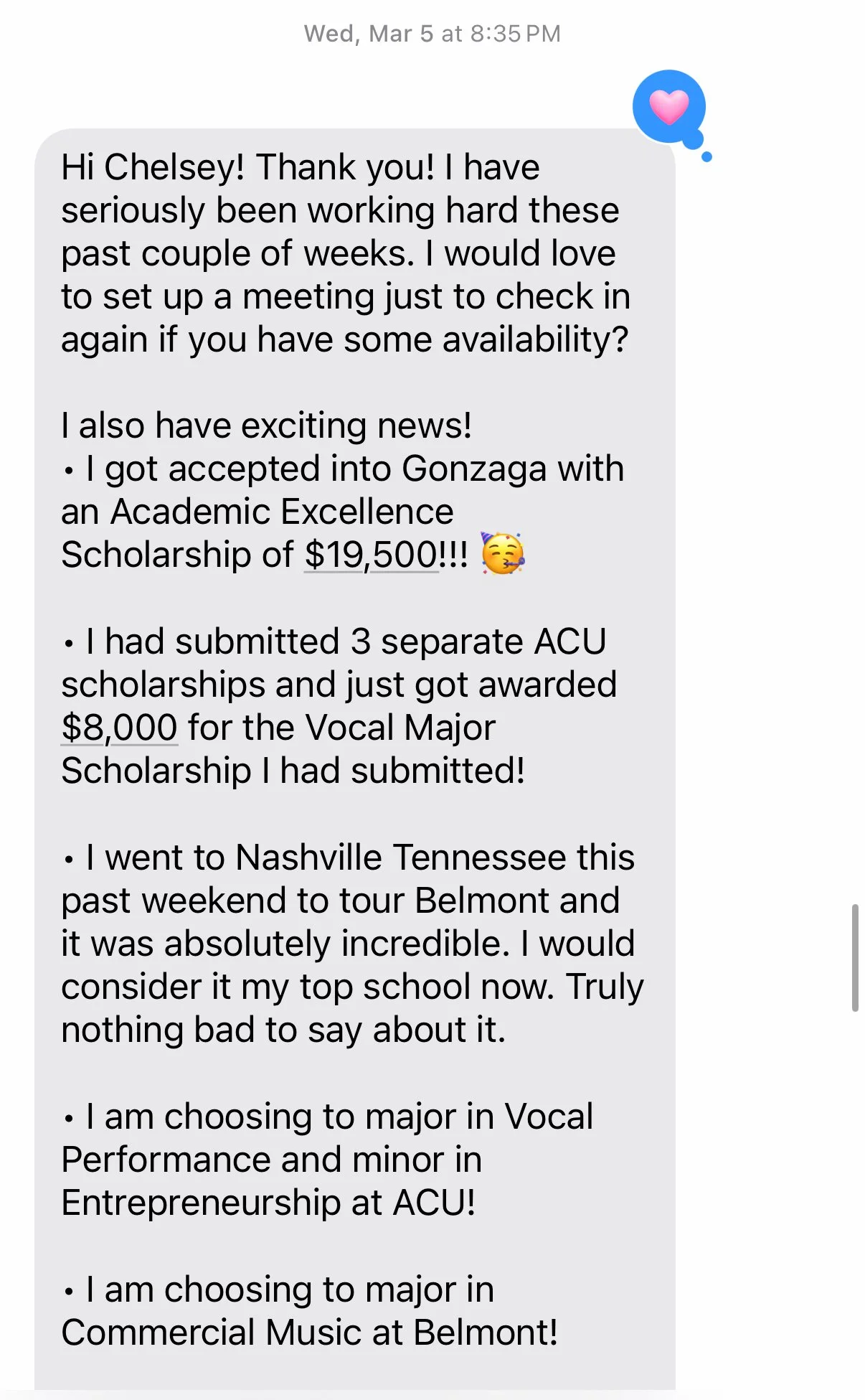 We help students explore who they are and what they value so we can connect them to colleges where they’ll be happy and thrive. Whether they dream of the most prestigious names out there or hold unwavering state school love and cheer hard for the home team, we meet them exactly where they are and help them discover where they’re going.